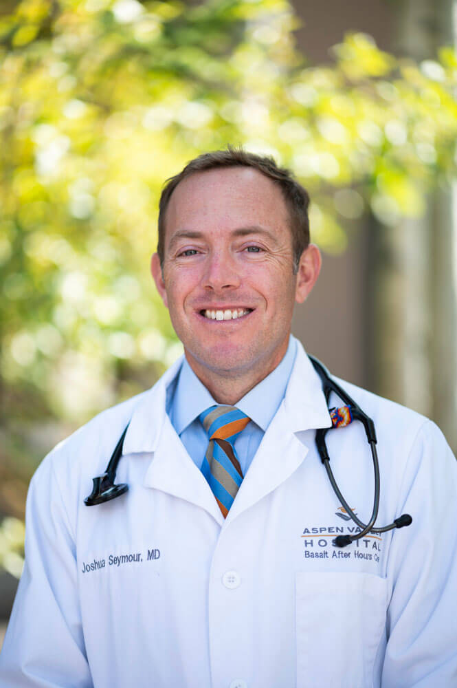 Dr. Joshua Seymour is the Medical Director of the After-Hours Medical Care clinic in Basalt as well as a volunteer firefighter for Roaring Fork Fire Rescue. He earned his medical degree at the University College Dublin in Ireland and completed his residency at the University of California, San Francisco, Fresno campus. He spent nearly a decade working in large, urban urgent care facilities in Southern California. In 2016, Dr. Seymour was hired as Medical Director of After-Hours Medical Care in Basalt and charged with overseeing its growth and development. As a physician in an urgent care setting, he treats just about every type of patient with every type of ailment: from infants to centenarians, and from serious sports and work injuries to the common cold. Dr. Seymour has a long relationship with Colorado and the Roaring Fork Valley. His parents have had a home in the valley for decades, and he attended the University of Colorado as an undergraduate. Dr. Seymour loves that he can go on an epic mountain bike downhill or hike Highlands Bowl with friends and family in the morning and see patients in the afternoon — a work-life balance that he and his family have not experienced elsewhere.